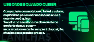 Com elas, você vai dominar orçamentos, quantitativos, controle de estoque, reformas e cronogramas — tudo num só lugar.
